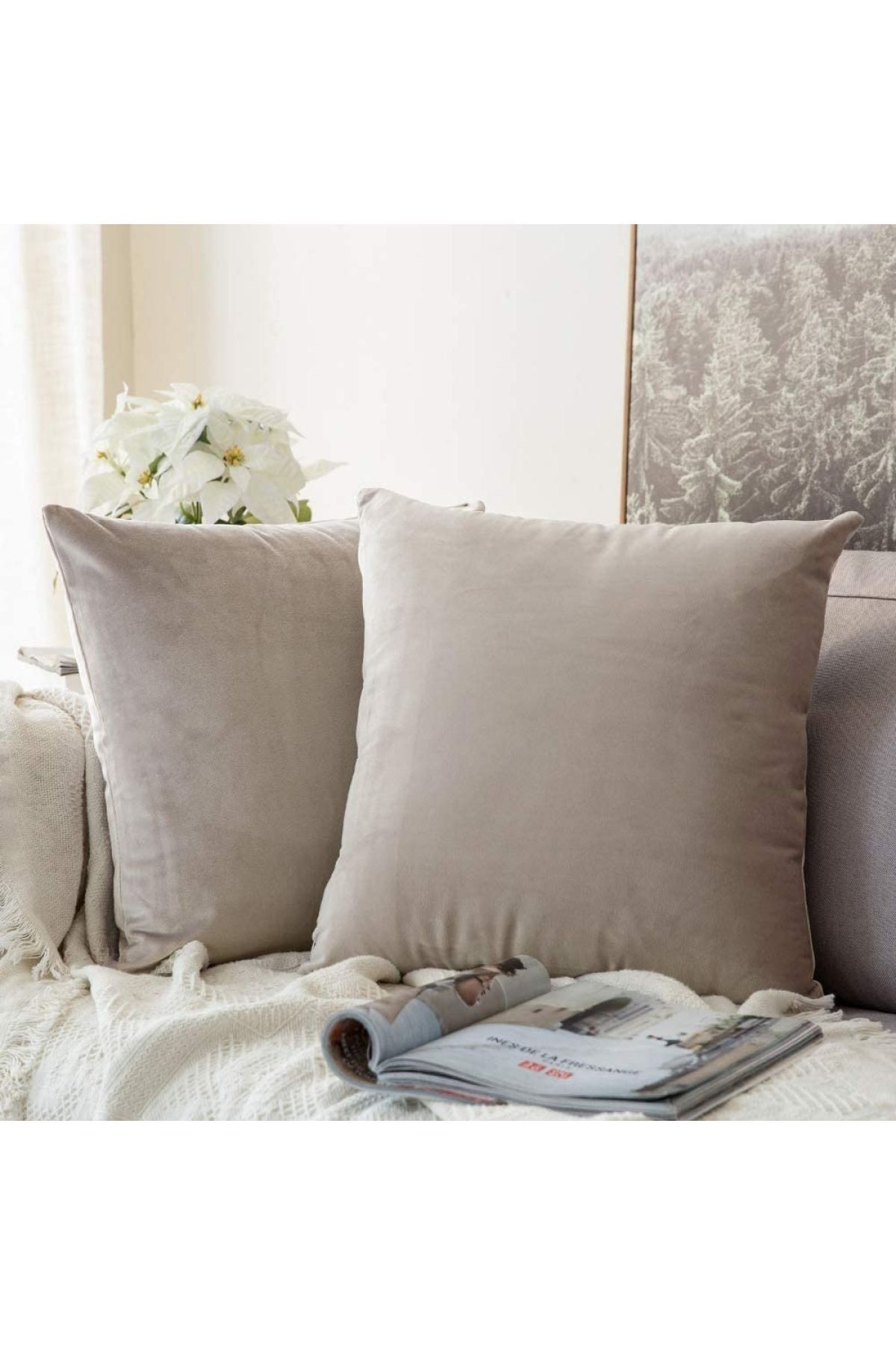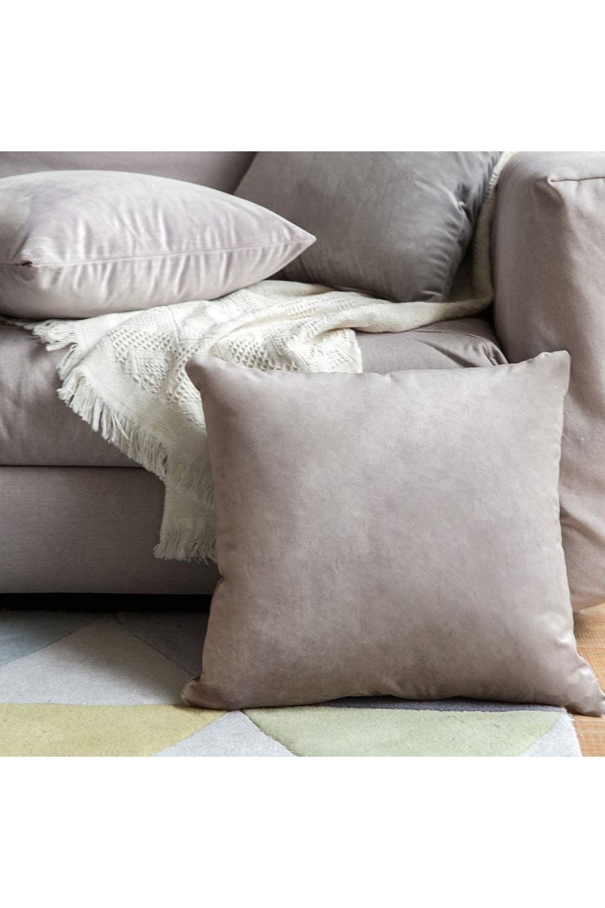 Açık Kahve Rengi Premium Kadife Özel Kırlent Kılıfı 2’li 43×43 Cm
