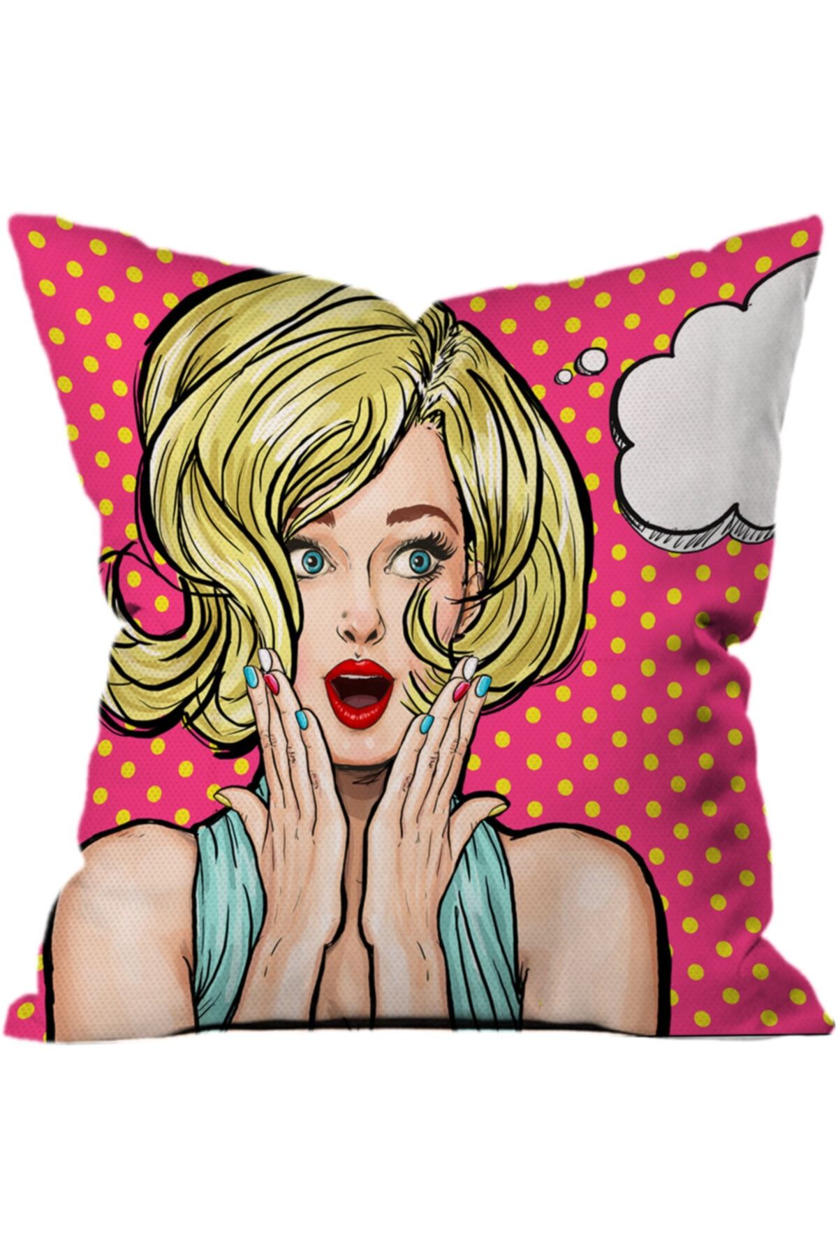 Kırmızı Şaşkın Kız Yastık Kırlent Kılıfı