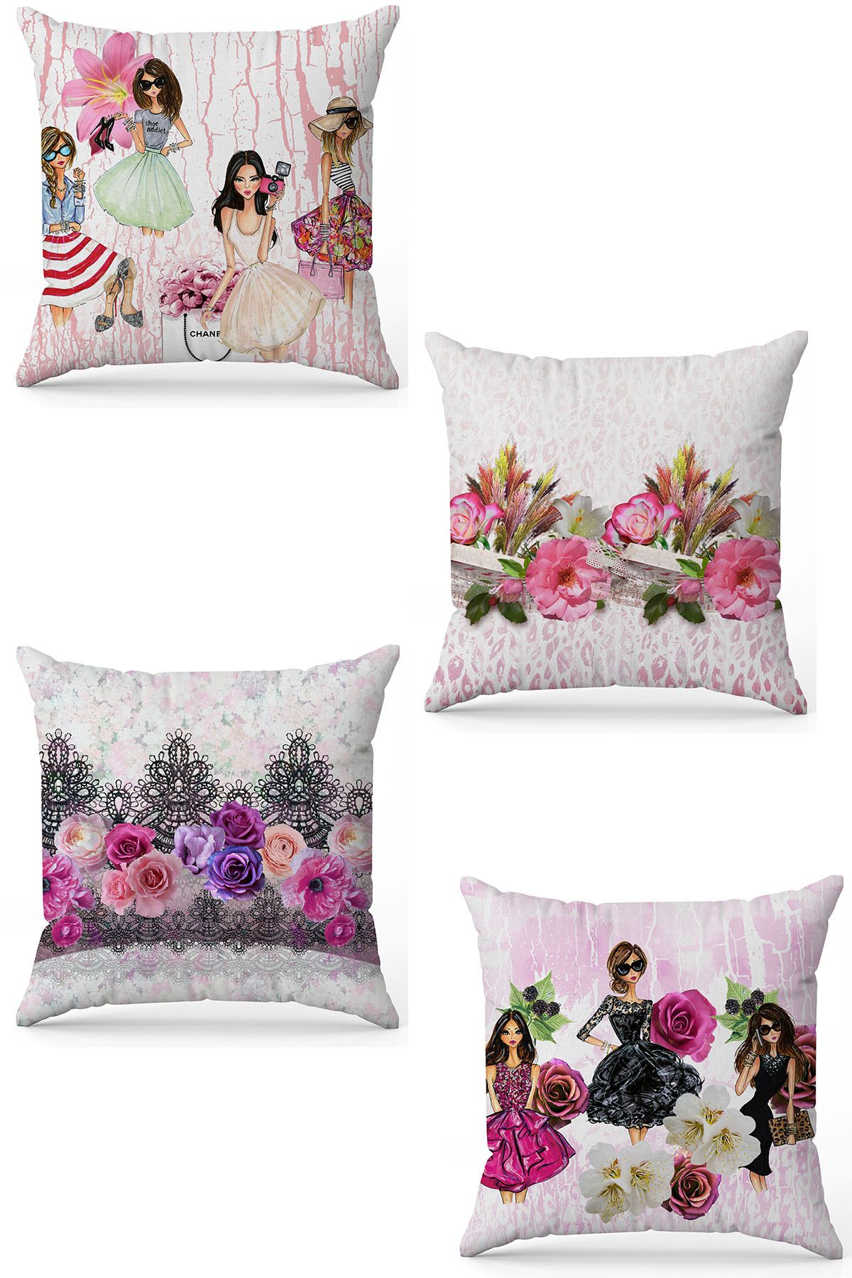 Özel Tasarım Çift Taraflı Dijital Baskı 4’lü Kırlent Kılıfı
