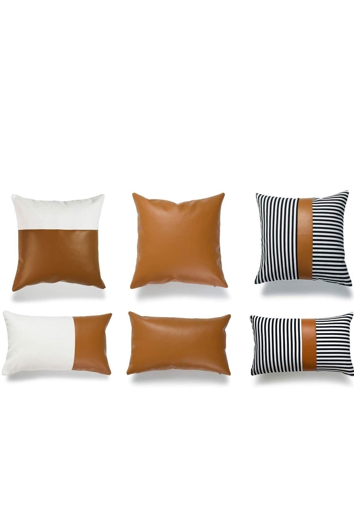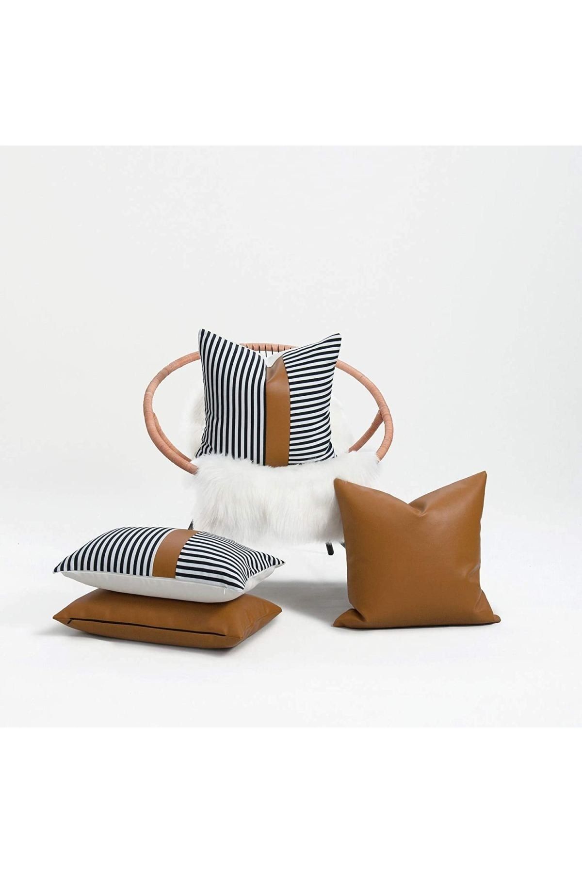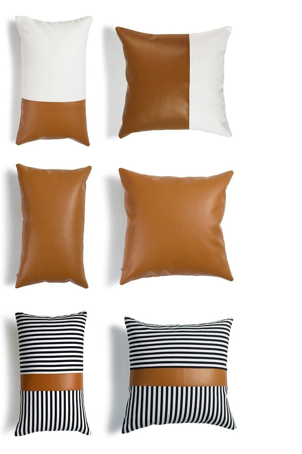 Özel Tasarım Çizgili Taba Deri 43×43 6’lı Premium Kırlent Kılıfı