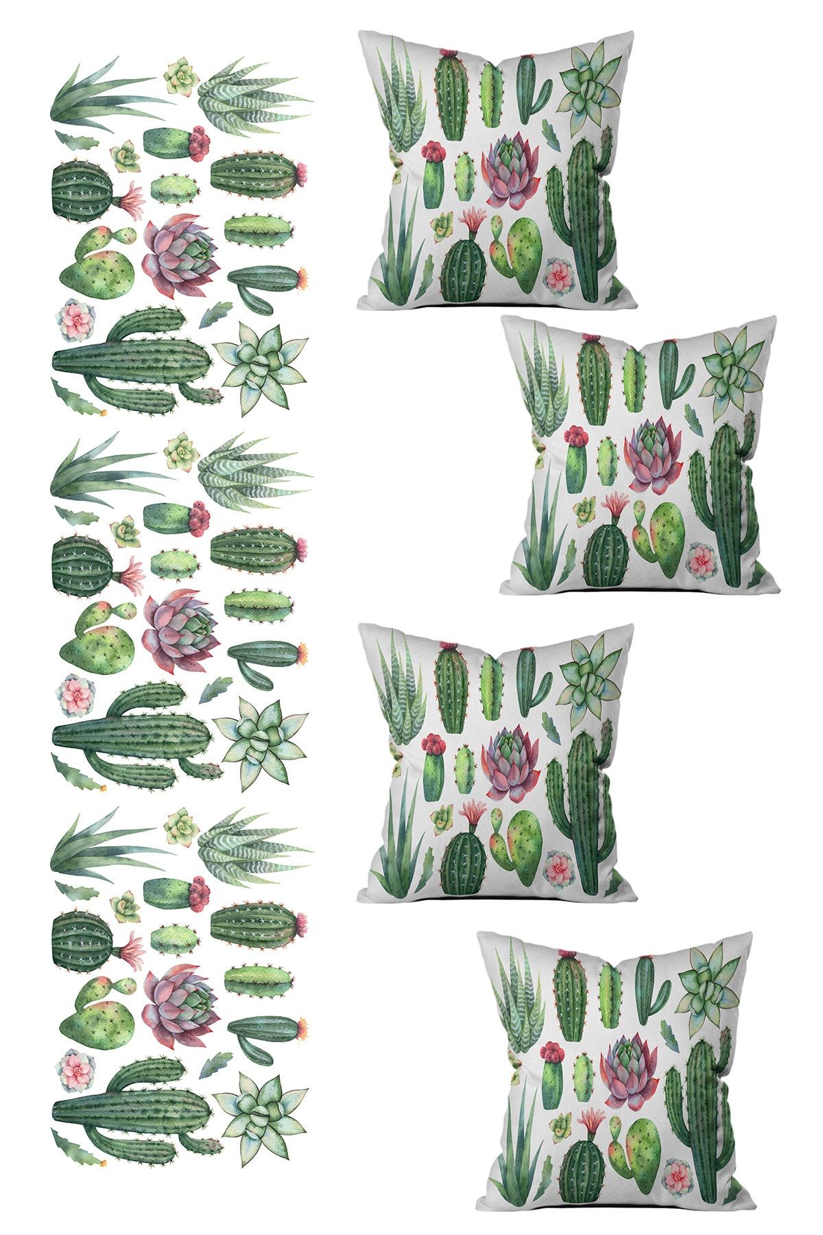 Özel Tasarım Runner Ve 4’lü Kırlent Kılıfı Seti 5 Parça (140×40) (43×43 Cm)