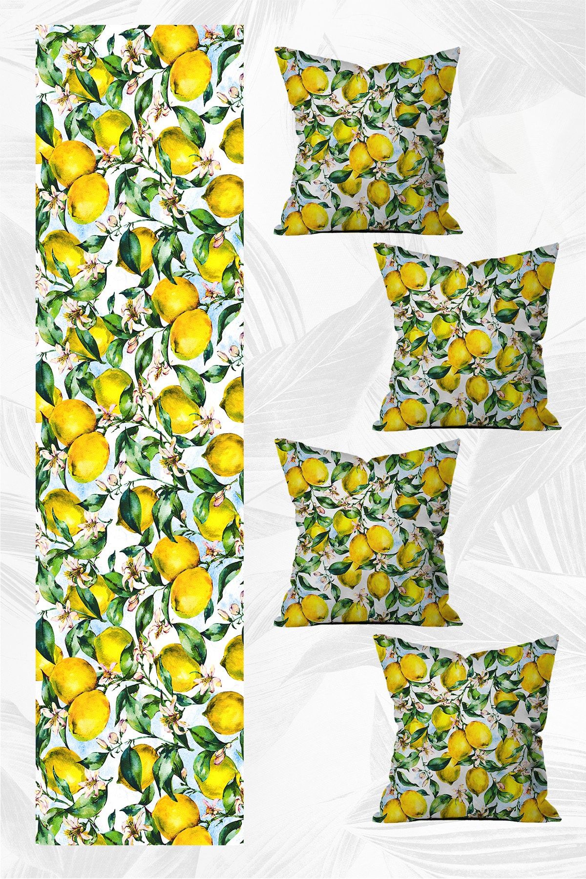 Özel Tasarım Runner Ve 4’lü Kırlent Kılıfı Seti 5 Parça (140×40) (43×43 Cm)