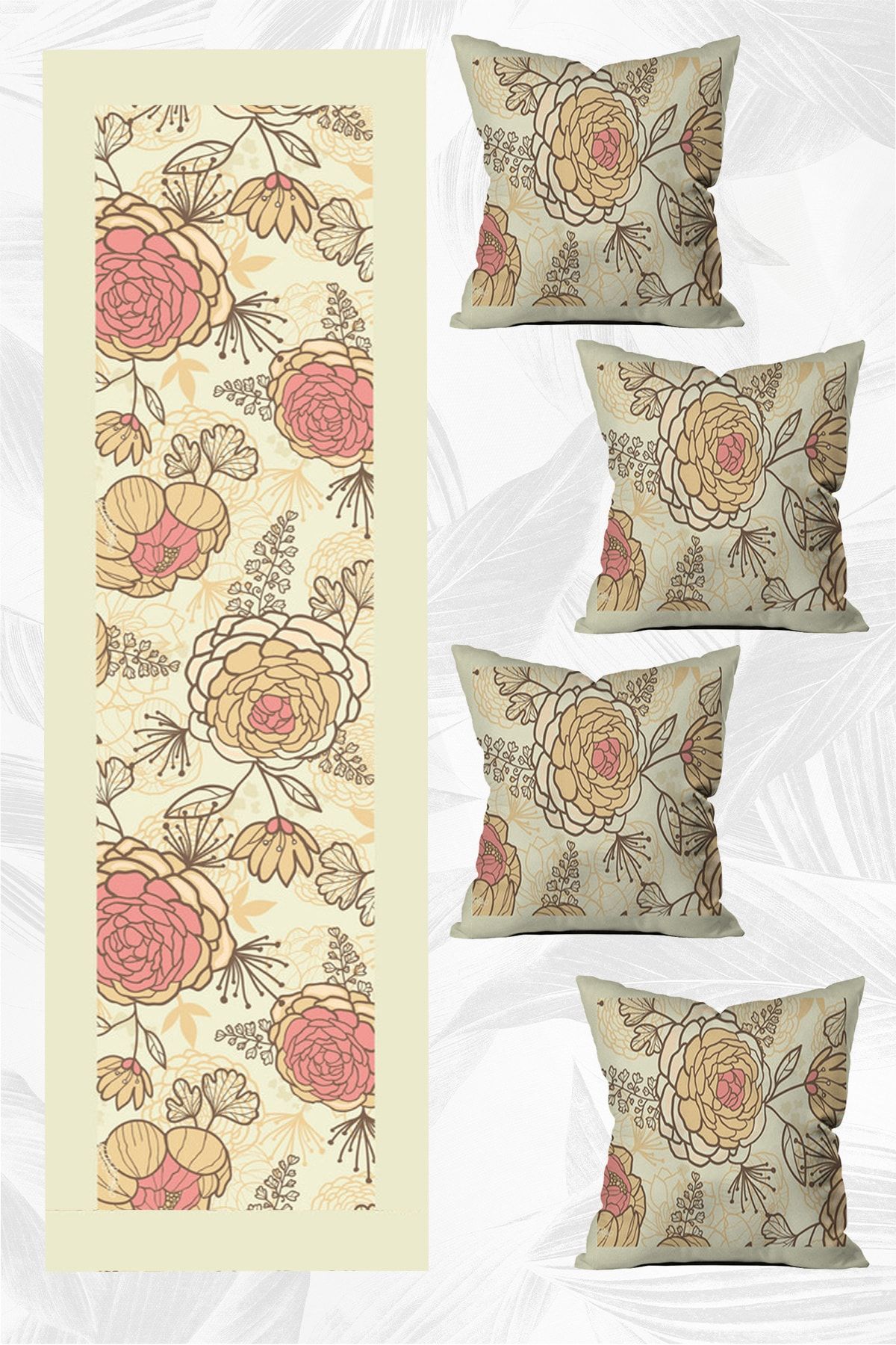 Yüksek kaliteli pamuk materyalden üretilmiş, doğal dokusuyla konforlu bir kullanım sunar; Dikdörtgen şekliyle modern ve şık bir görünüm sağlar, mekanınıza estetik bir dokunuş katar; 140×40 cm boyutlarındaki runner, masanızın üzerine zarif bir şekilde oturur ve dekoratif bir etki yaratır; 43×43 cm boyutlarındaki 4’lü kırlent kılıfı seti, oturma odanızın veya yatak odanızın atmosferini zenginleştirir;