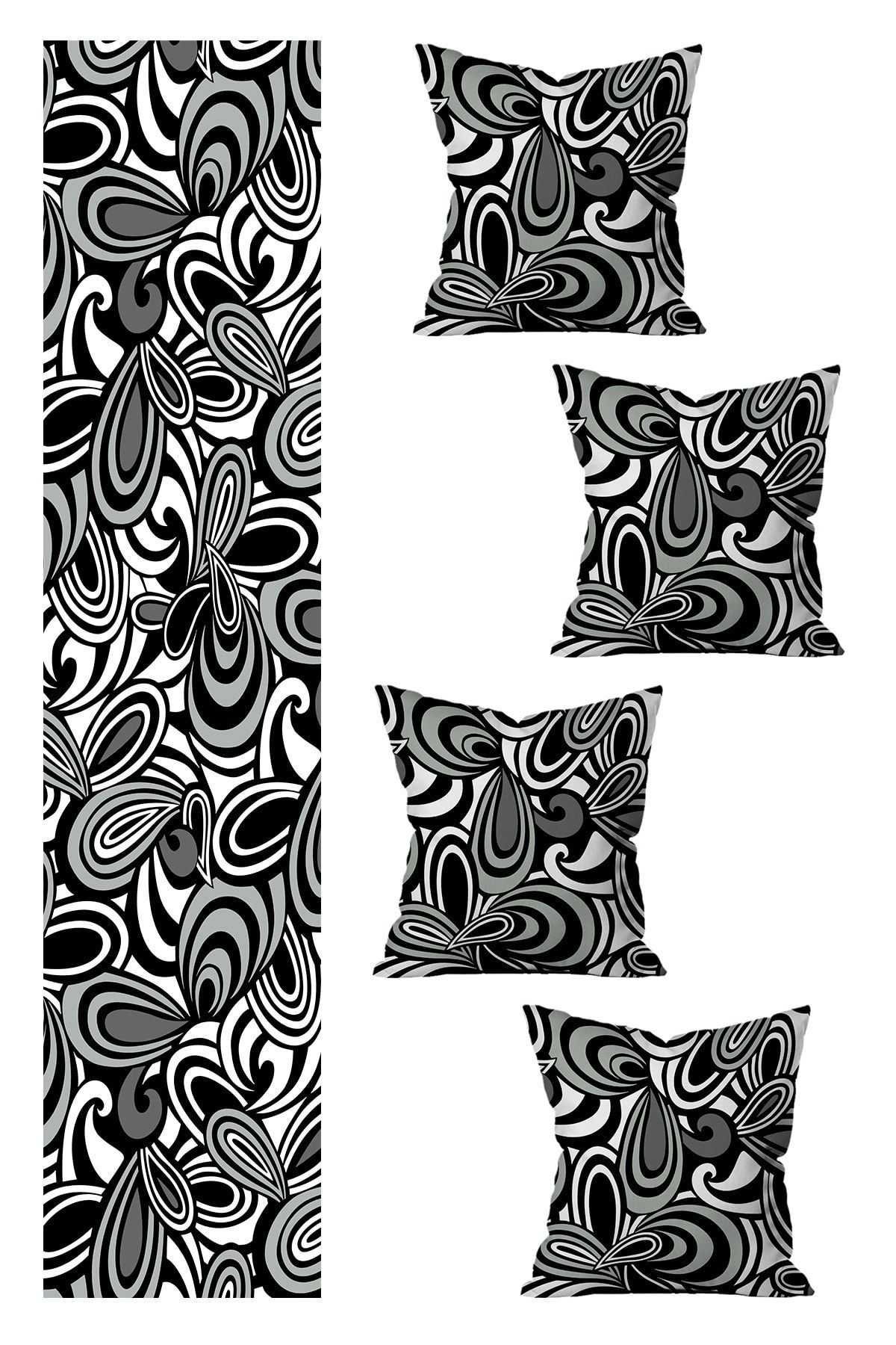 Özel Tasarım Runner Ve 4’lü Kırlent Kılıfı Seti 5 Parça (140×40) (43×43 Cm)
