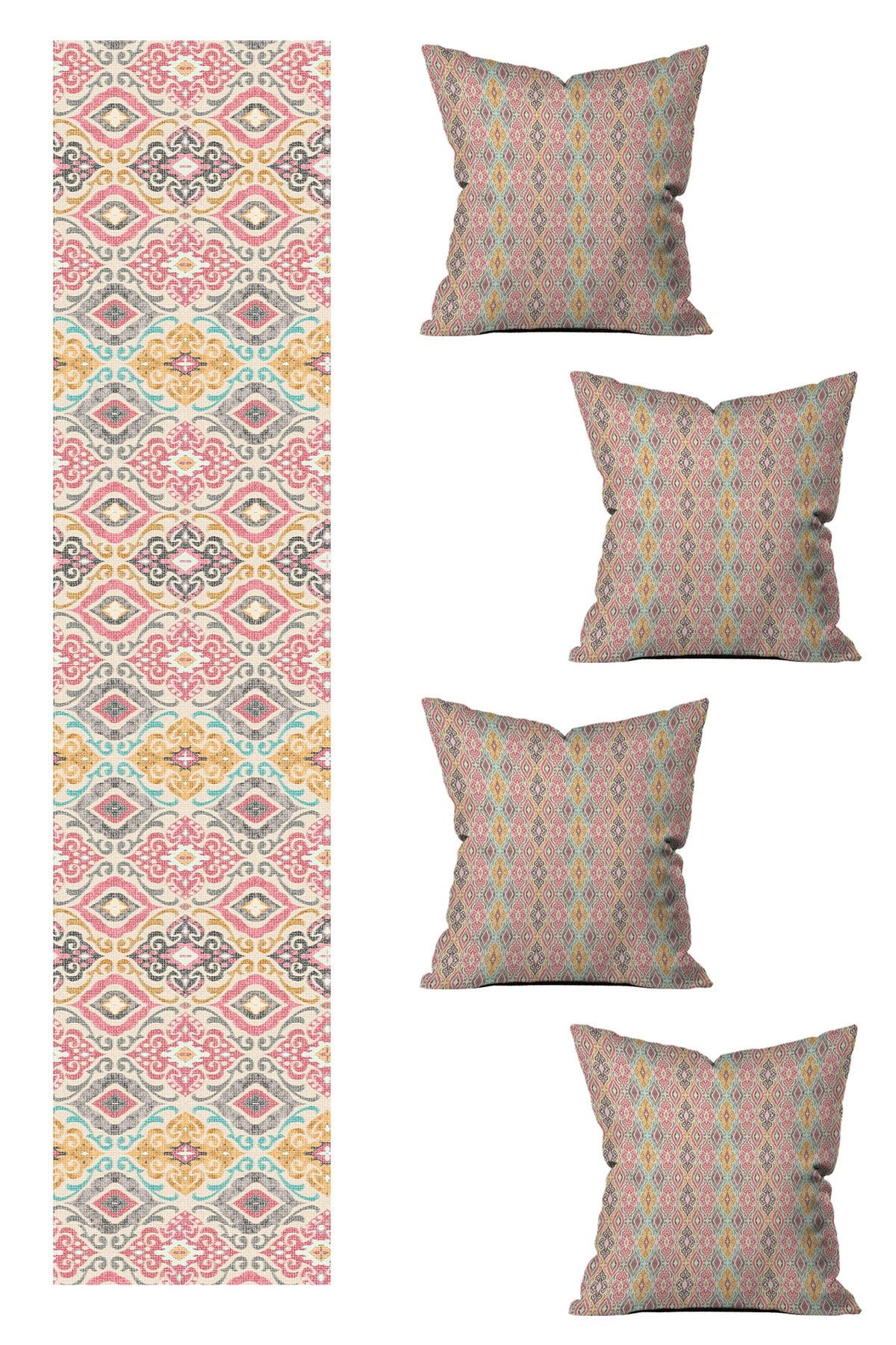 Özel Tasarım Runner Ve 4’lü Kırlent Kılıfı Seti 5 Parça (140×40) (43×43 Cm)