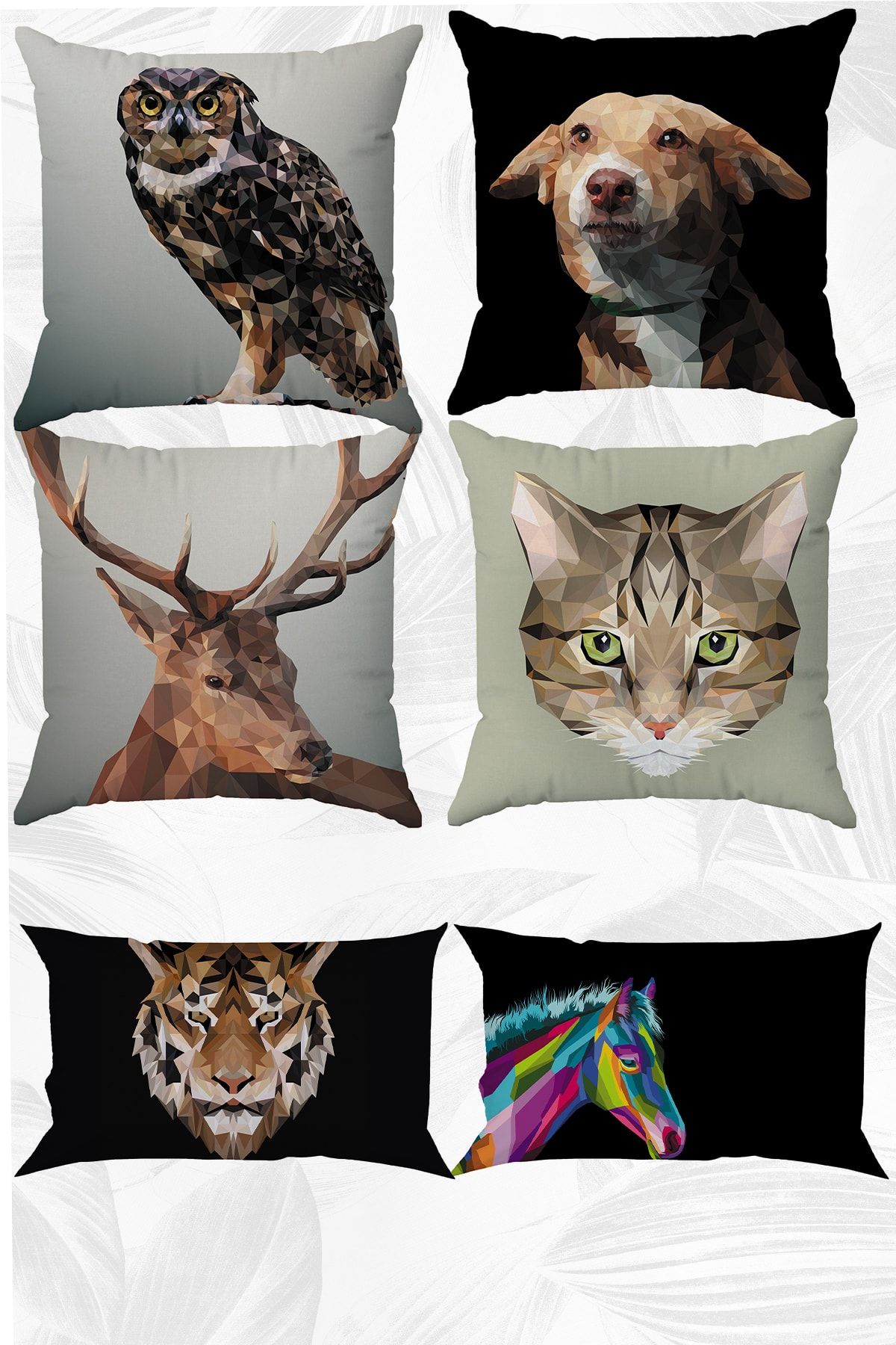 Polygonal Dijital Art Çift Tarafı Baskılı 43×43 Ve 30×50 Kırlent Yastık Kılıfı 6’lı Set