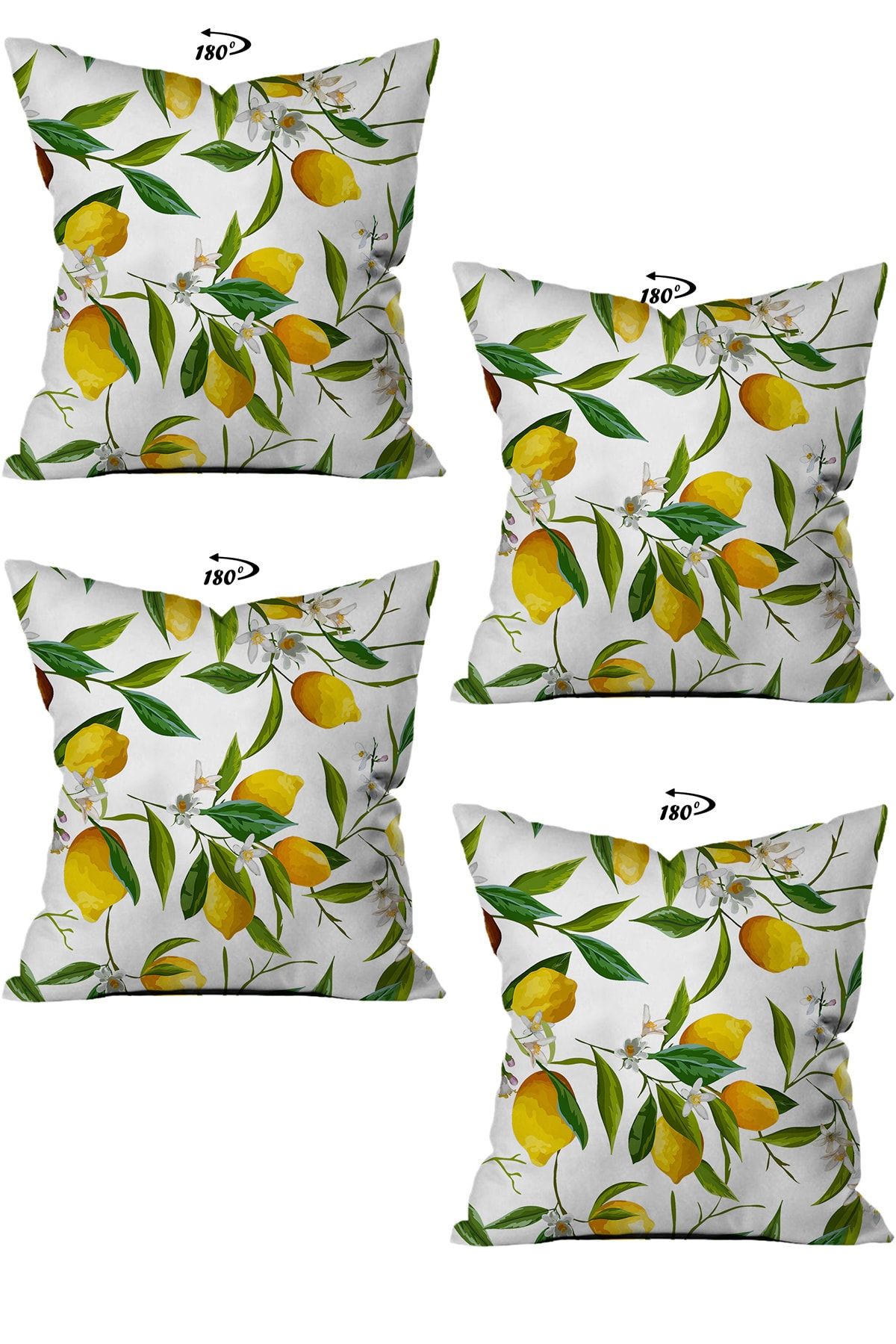 Sarı Limonlar Tasarım Çift Taraflı Dijital Baskılı 4’lü Dekoratif Kırlent Kılıfı