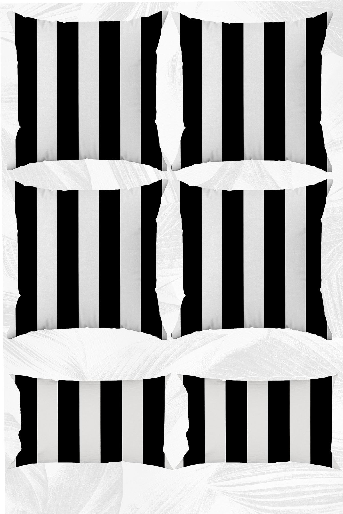 Siyah Çizgili Çift Tarafı Baskılı 43×43 Ve 30×50 Kırlent Yastık Kılıfı 6’lı Set