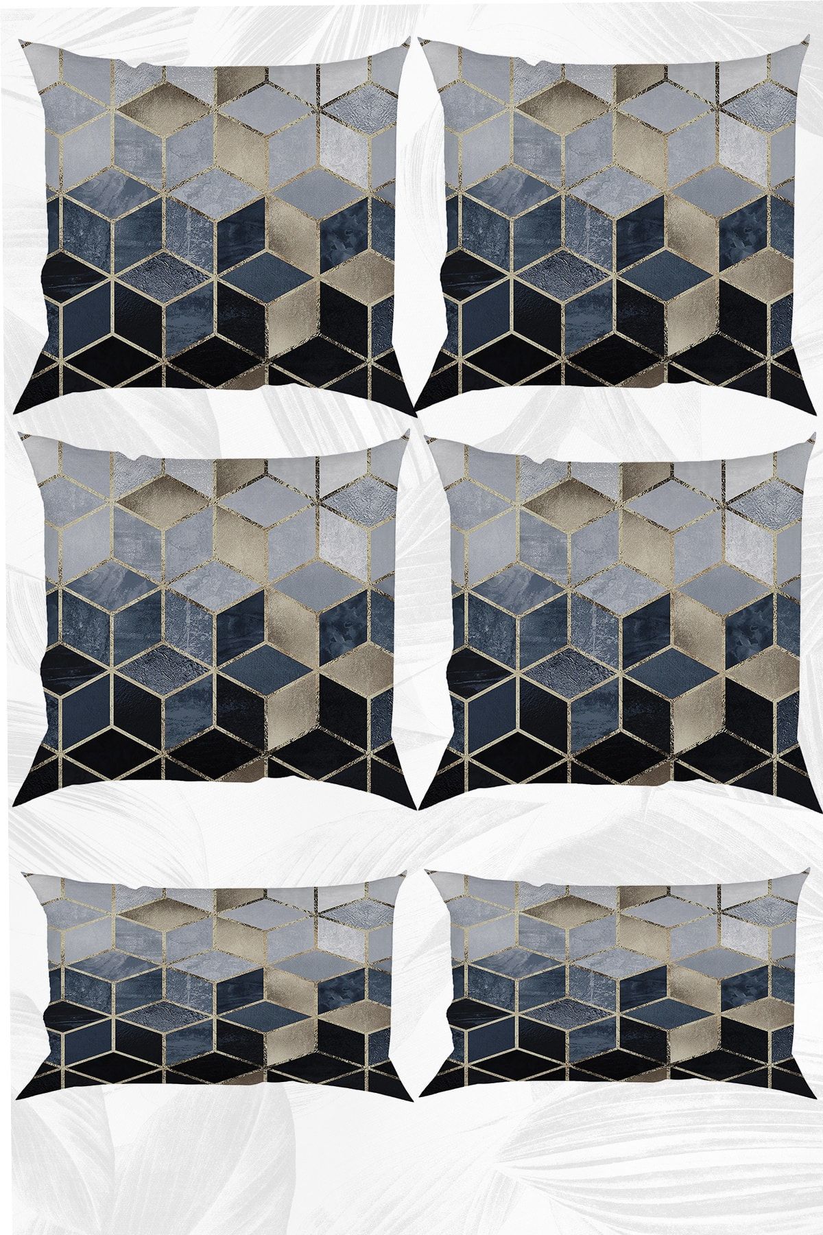 Siyah Mozaik Çift Tarafı Baskılı 43×43 Ve 30×50 Kırlent Yastık Kılıfı 6’lı Set
