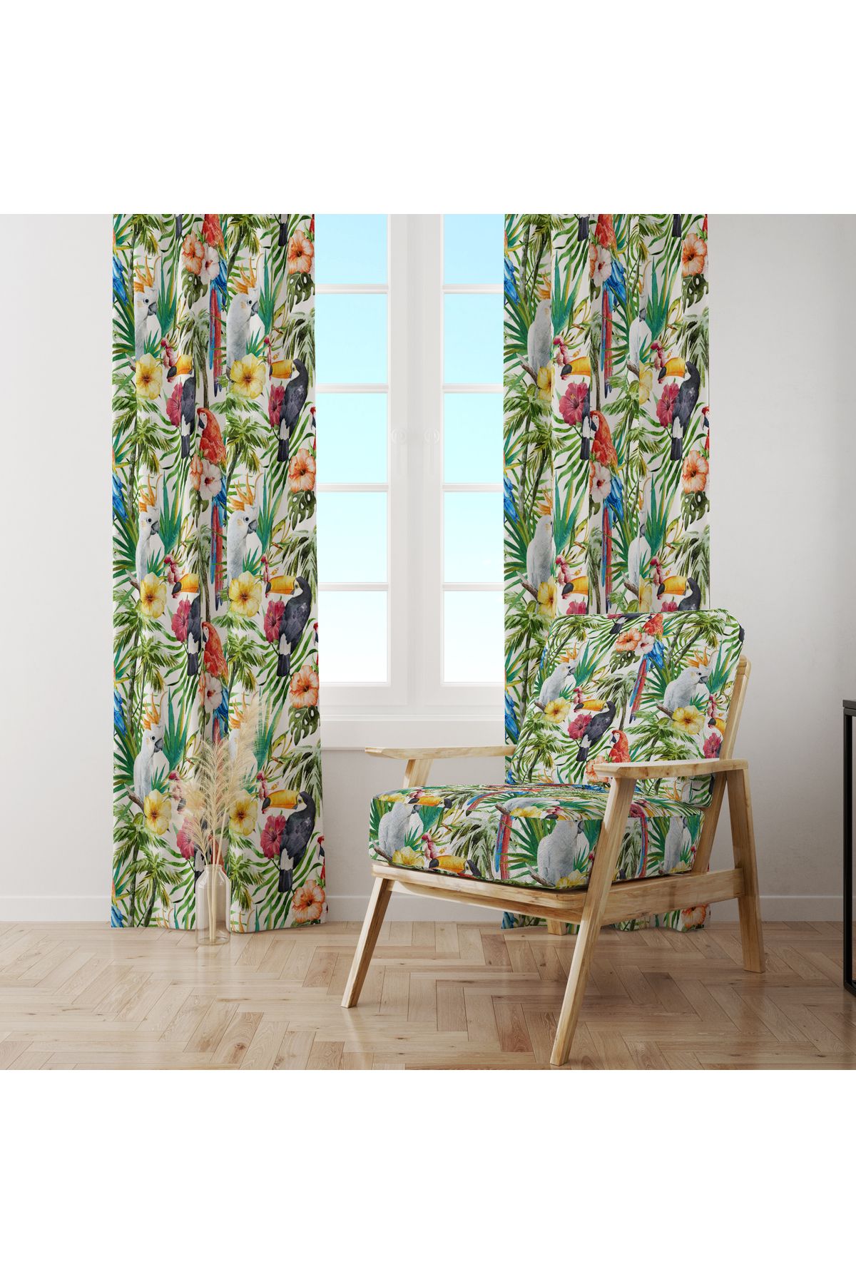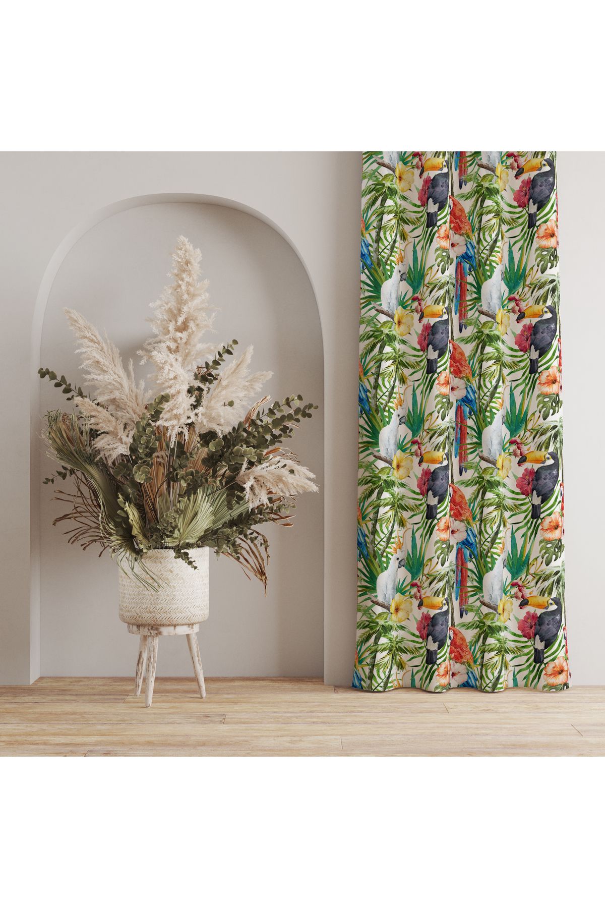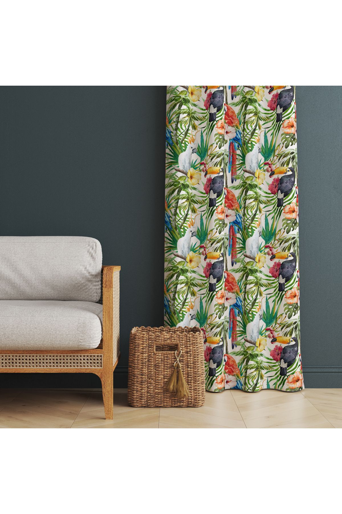 Evinize tropikal ve enerjik bir atmosfer kazandıracak bu kuş desenli fon perde, hem estetik hem de fonksiyonel bir kullanım sunar.; 140×260 cm ölçülerindeki bu perde, geniş ve uzun pencereler için ideal olup, dekorasyonunuza canlı ve egzotik bir hava ekler.; Tropikal kuşların ve yaprakların uyumu, iç mekana hem doğayla bütünleşmiş hem de dikkat çekici bir dokunuş kazandırıyor.; Ölçü: 140×260 cm (Standart pencere ve cam kapılar için uygun) Materyal: Yüksek kaliteli, ışık filtreleyen polyester kumaş Özellikler: Gün ışığını dengeli şekilde kontrol ederek ferah bir atmosfer yaratır.; Kolay temizlenebilir ve ütü gerektirmez.; Korniş uyumlu olup, montajı zahmetsizdir.; Bu perde, tropikal desenleri ve egzotik kuş figürlerini modern dekorasyonla birleştirerek, salon, yatak odası, oturma alanı veya Özel Tasarımlı mekanlarda dinamik ve ferah bir atmosfer yaratmak isteyenler için mükemmel bir seçimdir• 140 x 260 cm Seçenek (Tek Kanat) = 1 Adet Eni 140 cm, Uzunluğu 260 cm Olan 1 Adet Fon Perde Gönderilecektir.; • Kumaş Özelliği: Petek Mikro kaliteli ve baskılı kumaşı olup yumuşak dokuya sahiptir.; • Paket İçeriği ve Malzeme Bilgisi: Ürün rustik boru ve korniş sistemi ile kullanıma uygun olarak dikilmektedir.; Ürün perde bağı ve 20 adet korniş düğmesi ile birlikte gönderilir.; • Baskı: Tasarımlarımız dijital baskı olup kullanıma ve yıkamaya bağlı olarak solma yapmaz.; • Yıkama: 30°’de makinede yıkanabilir ve ütülenebilir.; • Kullanım Bilgisi: Perdelerimiz tek tarafı dijital baskılı olup baskı kalitesini yıllar boyu kaybetmez.