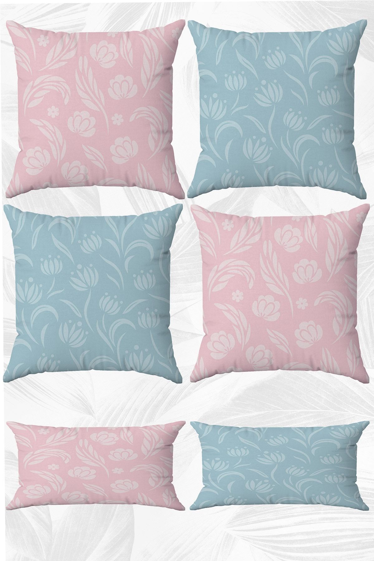 Yaz Çiçekleri Çift Tarafı Baskılı 43×43 Ve 30×50 Kırlent Yastık Kılıfı 6’lı Set